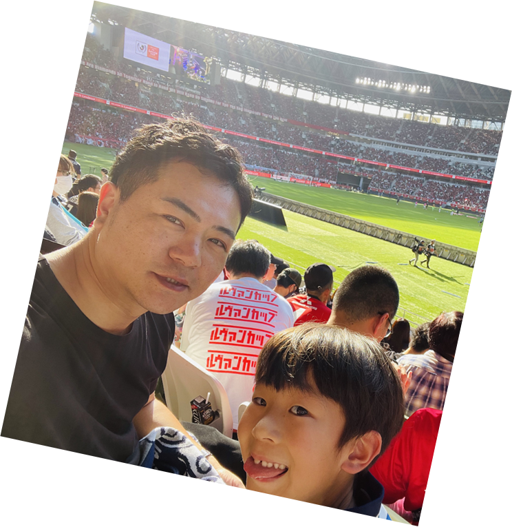休日にはANAの飛行機を利用して家族で東京や大阪、沖縄など色々な場所へ旅行に行っています。最近も長男と2人で国立競技場へサッカー観戦に。次はFLYING HONU(フライングホヌ)に乗ってハワイに行きたいと思っています!